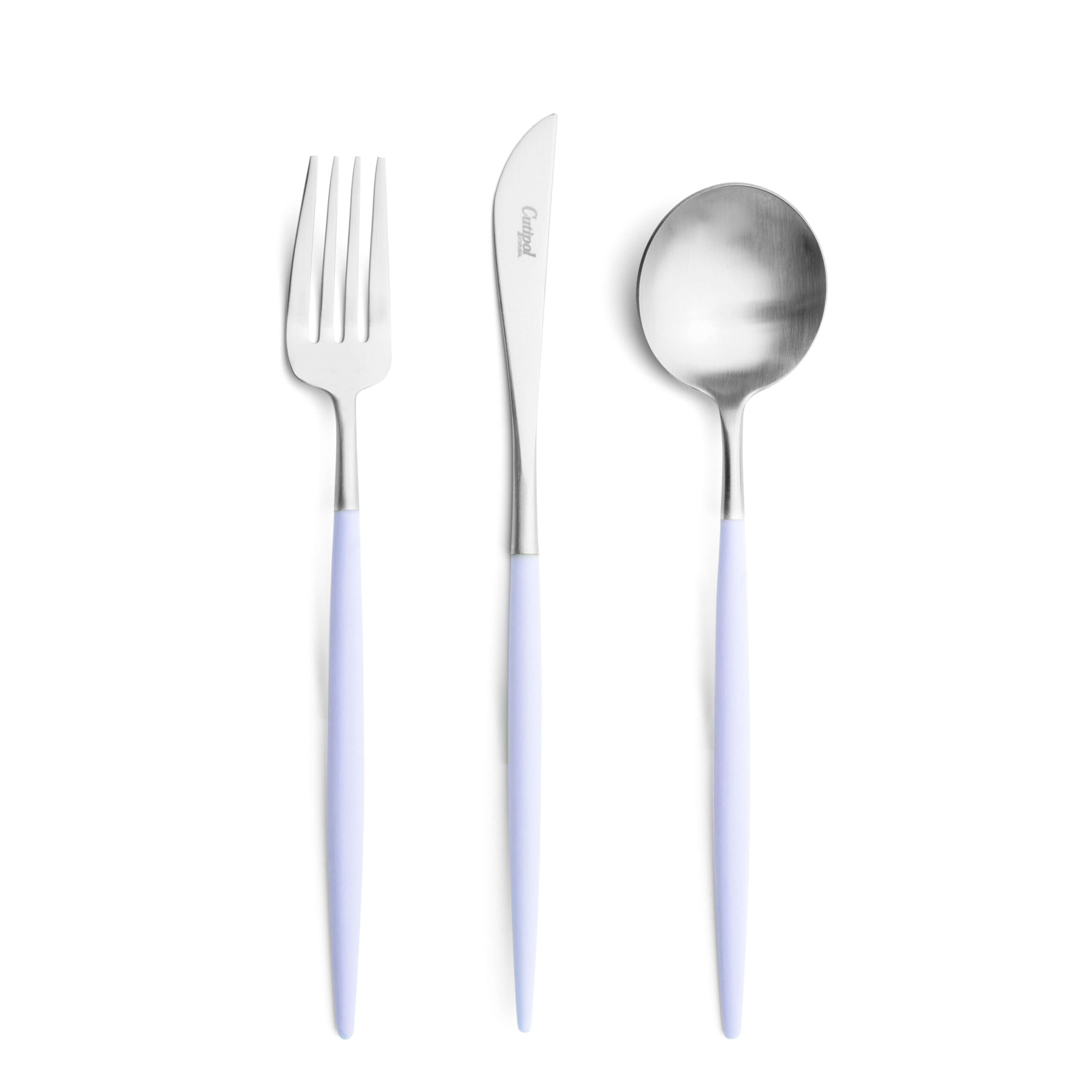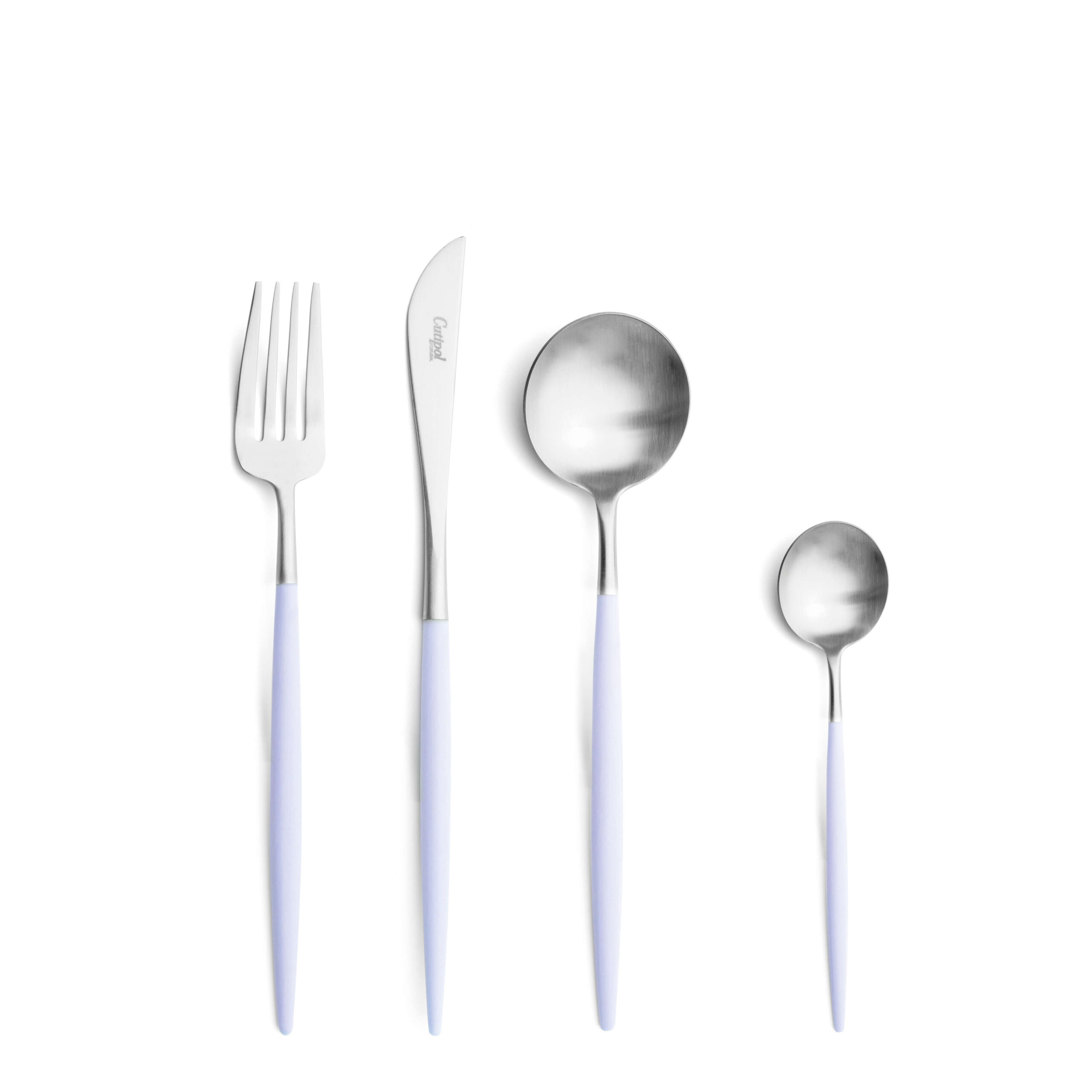 With its tapered resin handles and disciplined profiles, Goa sets a calm, modern tone. Complete set of dining, serving, and specialty pieces available.