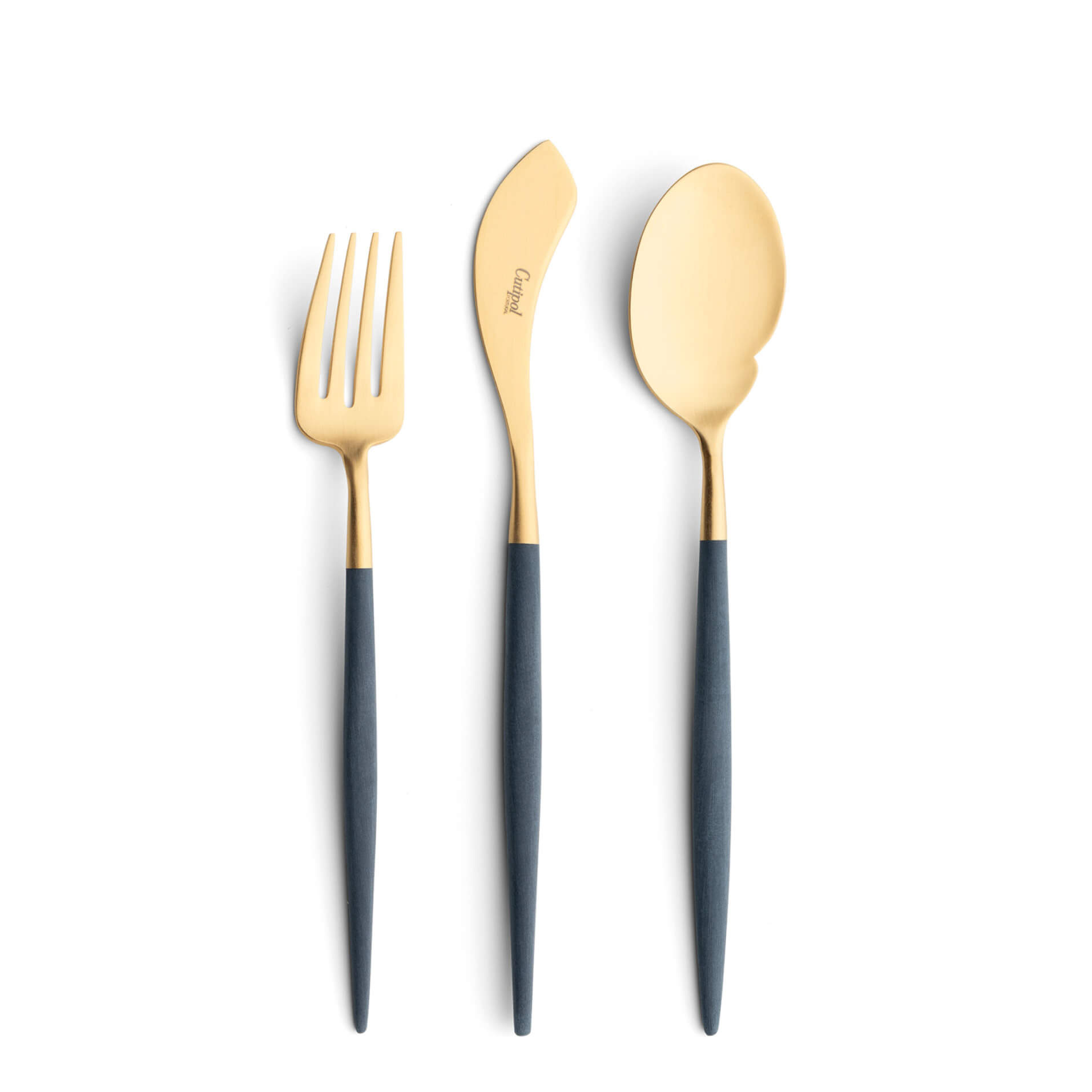 A minimalist look with maximum versatility: mix and match finishes and handle tones across a deep catalog of place, service, and specialty pieces.