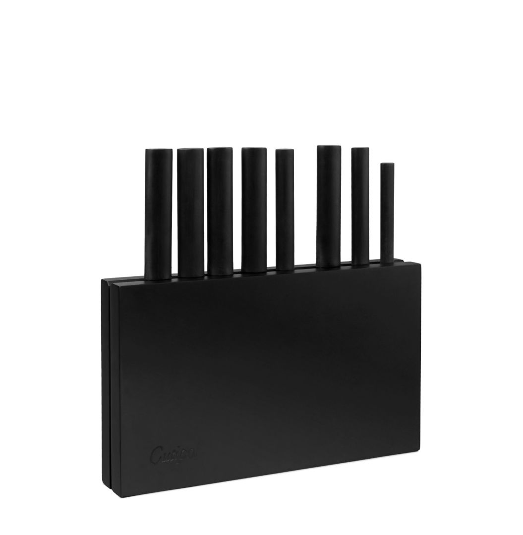 Gourmet Collection Base The Cutipol Gourmet series addresses daily kitchen needs with a comprehensive set of task-specific tools. You will find chef, boning, Santoku, utility, bread, ham, and paring knives alongside ergonomic servers, spatulas, and salad tools. While not artisanal production, the line reflects Cutipol?s design discipline and quality standards – delivering a cohesive, refined, and highly functional set crafted in stainless steel and black resin, available in matte and matte gold finishes. Each piece balances modern aesthetics with practicality for both professional environments and elevated home cooking.