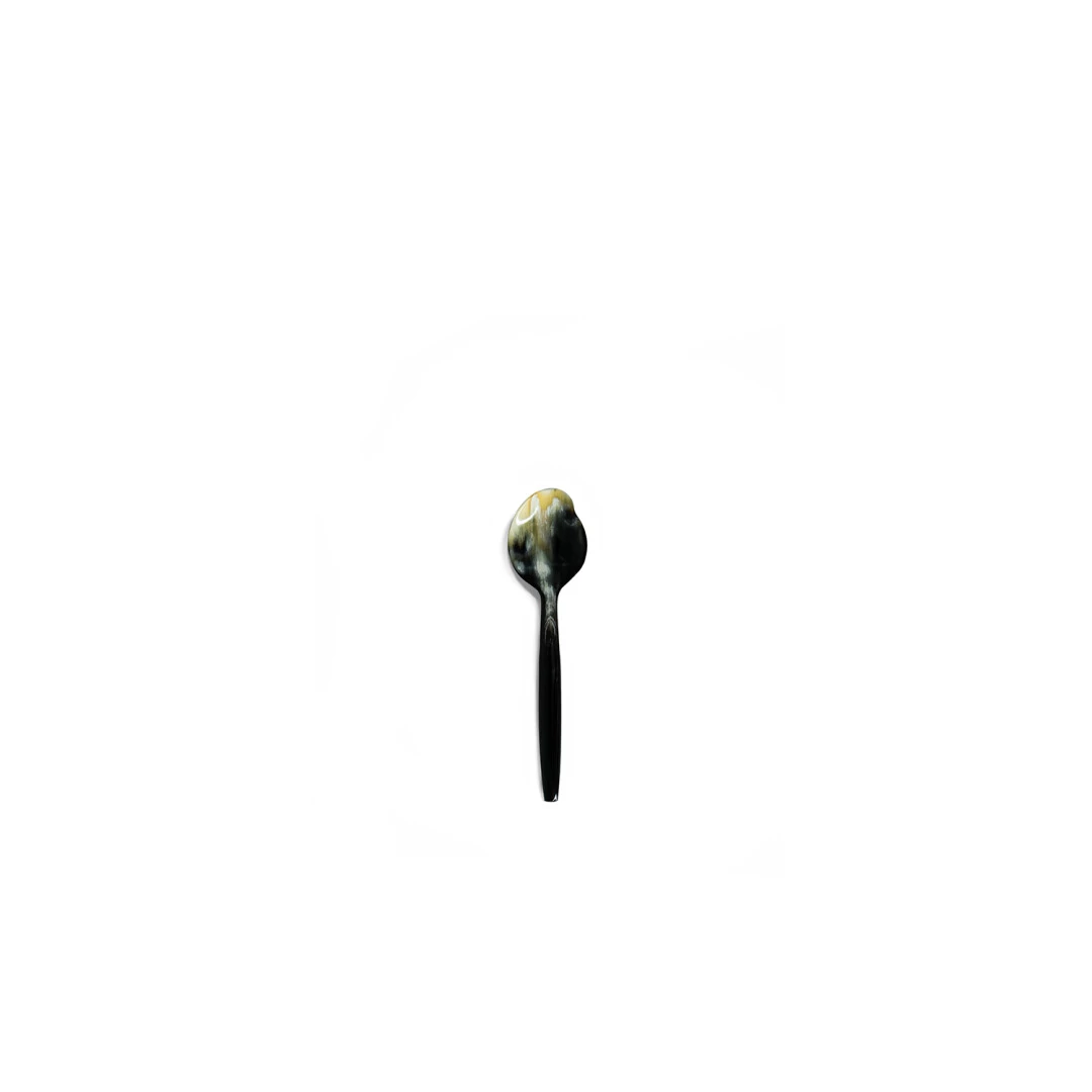 Black marble horn caviar spoon – non-reactive serving for premium roe and delicate garnishes.