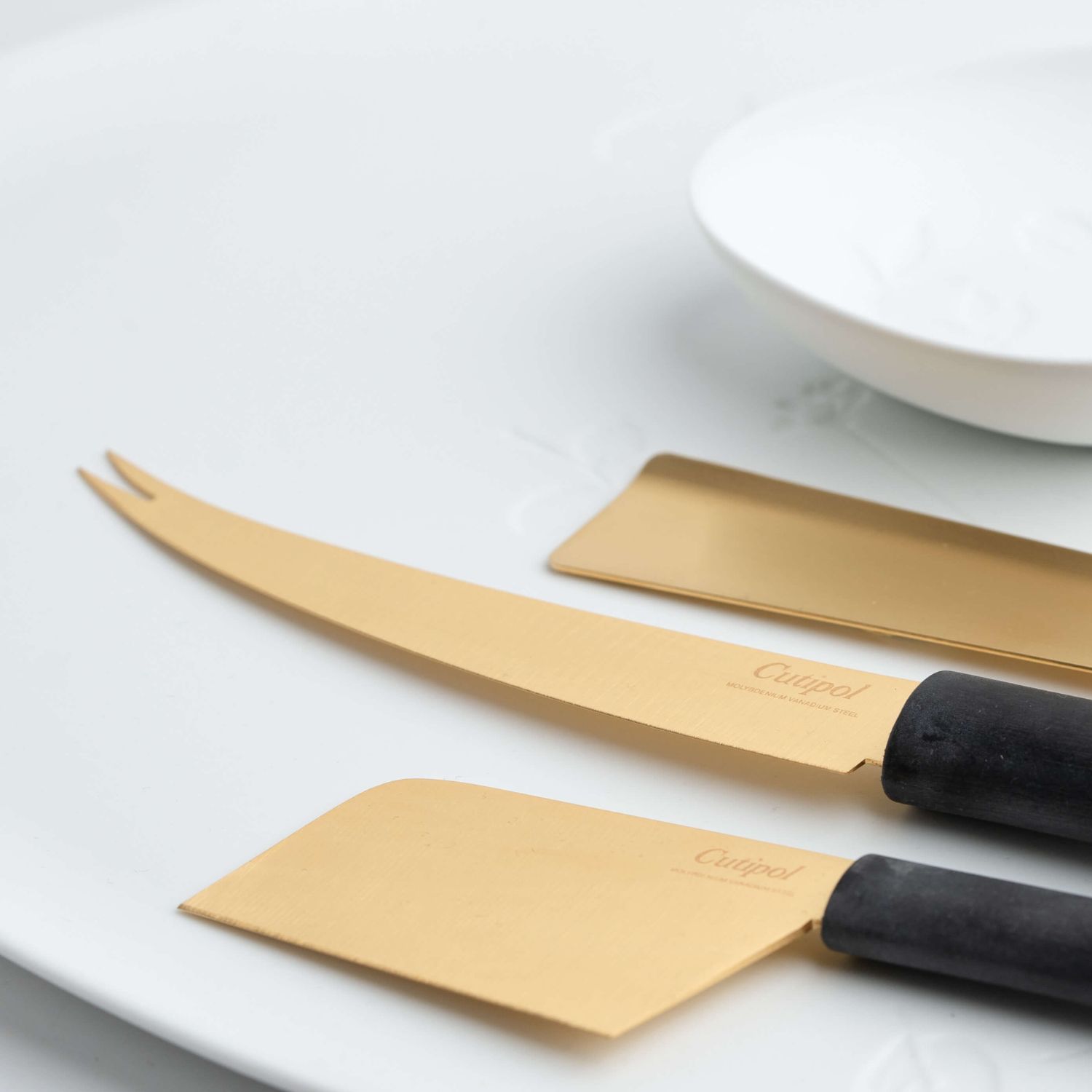 Gourmet Collection: Durable stainless steel and black resin construction in matte or matte-gold finishes.
