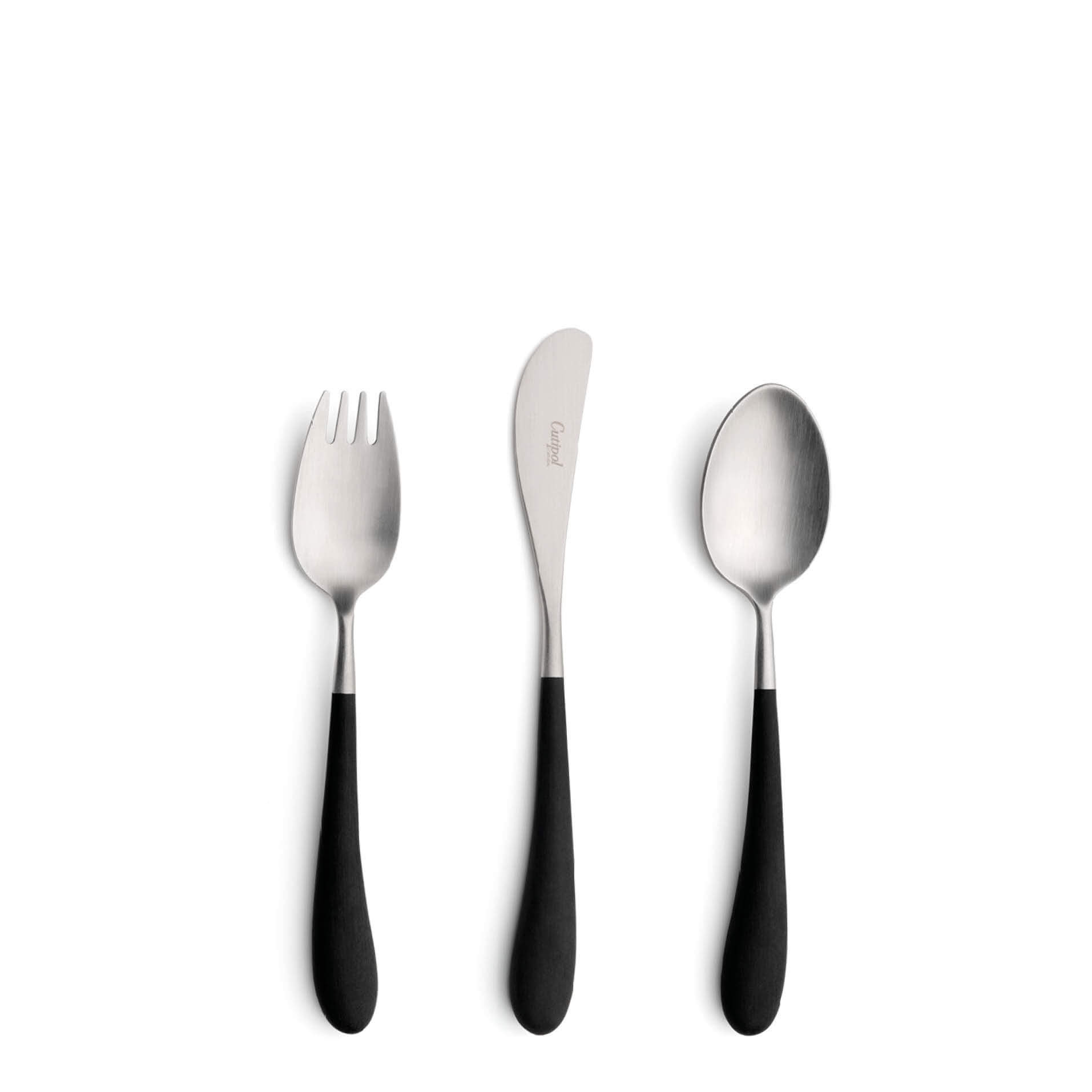 Stainless heads and curved resin handles help little diners learn proper grip and motion. Comes with a wool case for tidy storage. Multiple colorways;