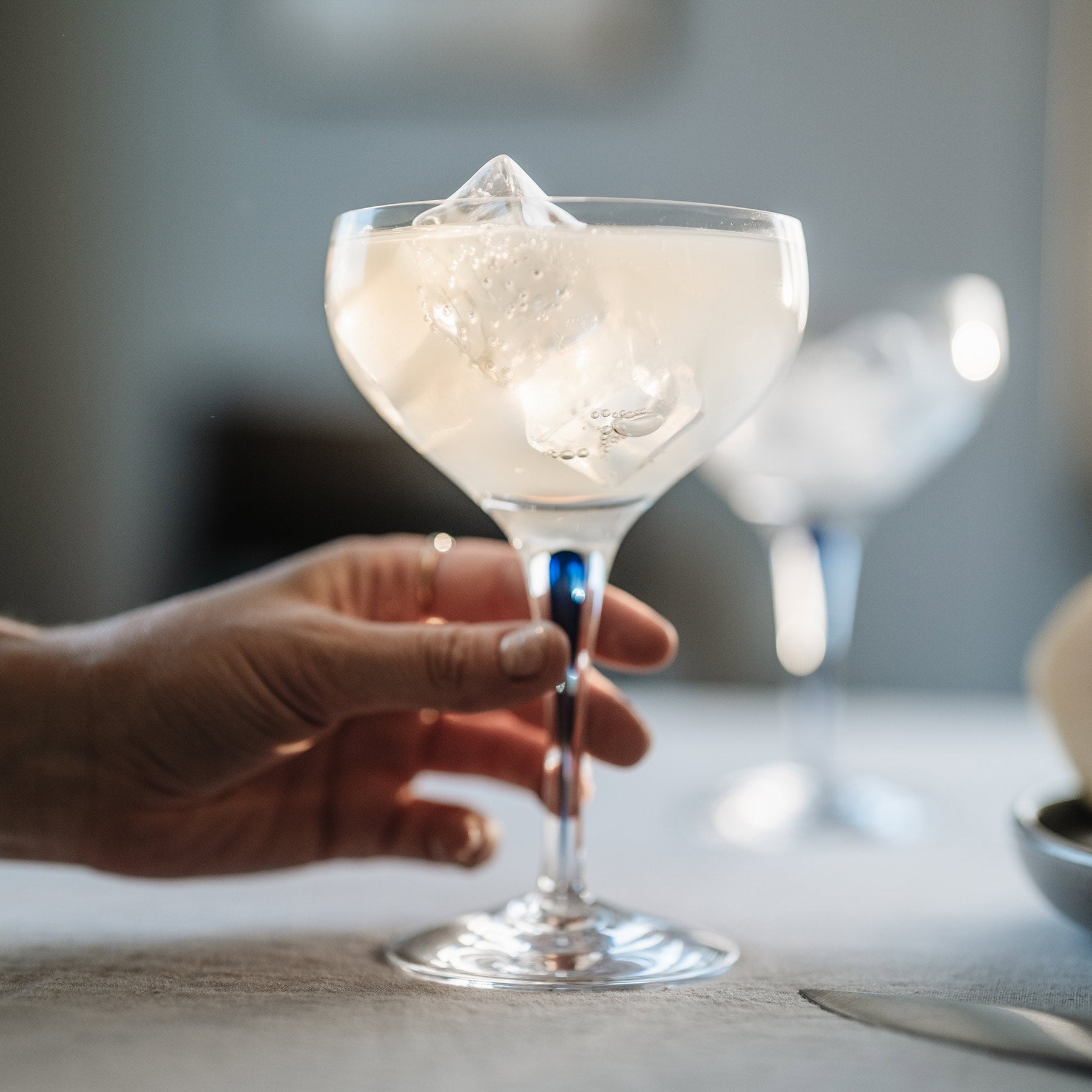 • The glass is mouthblown in Sweden by expert glassblowers and has a drop of blue sealed inside the stem – an innovation based on traditional craftsmanship